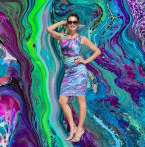 I really love to paint but I knew there was more I wanted to do so I started a Fashion Design Company in 2018 called Wear Art Live Art (WALA). I paint an abstract, have it printed onto fabric, and design apparel that is one of a kind. Women, including me, don’t want to attend events wearing something identical to others – we want to be unique! WALA fashion provides the perfect solution!