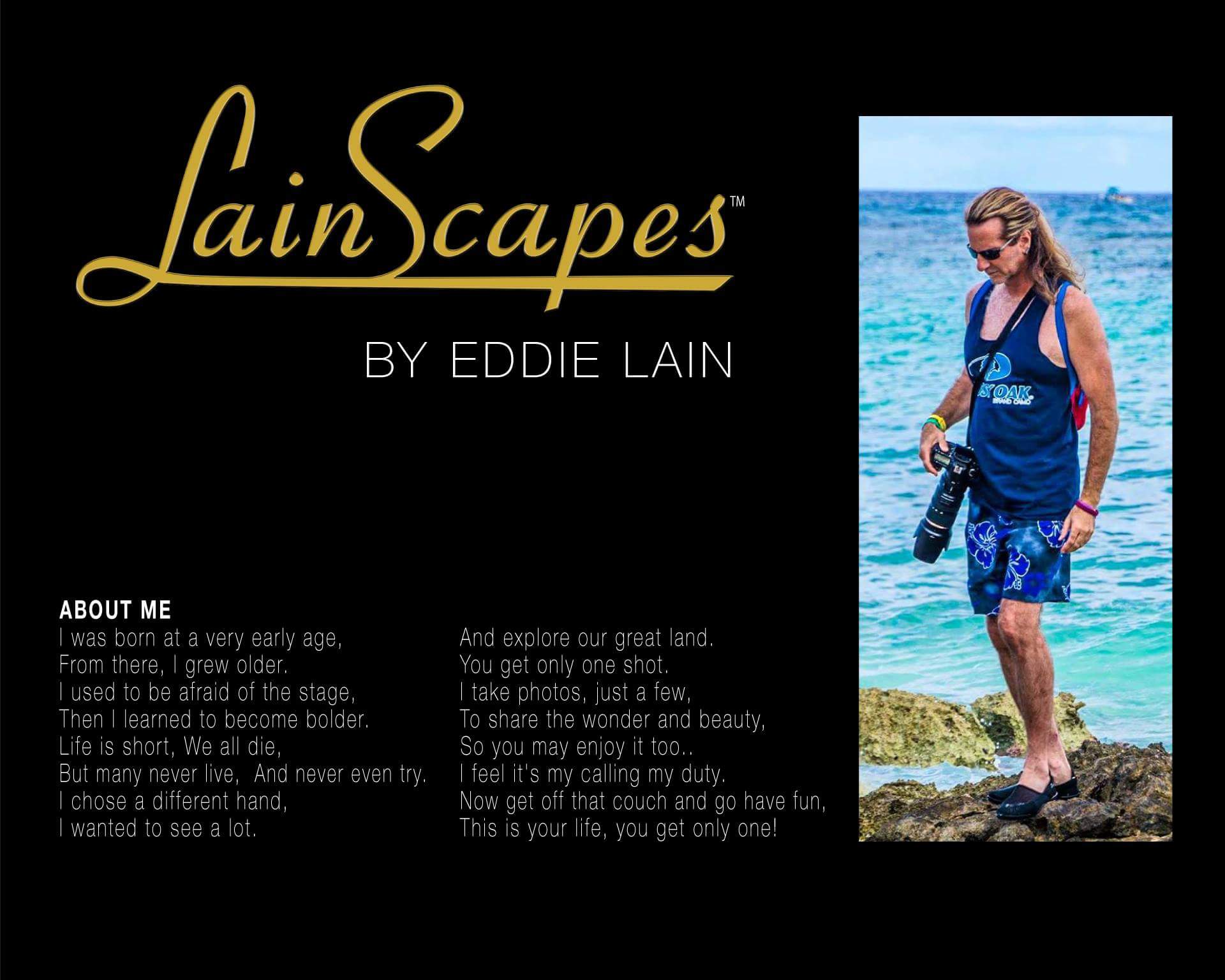 Born Edward Lain Blackman, Eddie Lain was raised in the San Fernando Valley of Los Angeles. Eddie moved to San Diego to attend UCSD. While there, Eddie majored in medicine and minored in photography. During the time while at UCSD, Eddie participated as talent in several modeling and film productions and later went on to be the producer of fashion shows, music television shows, and fundraising events for several organizations and secured sponsors for those productions.