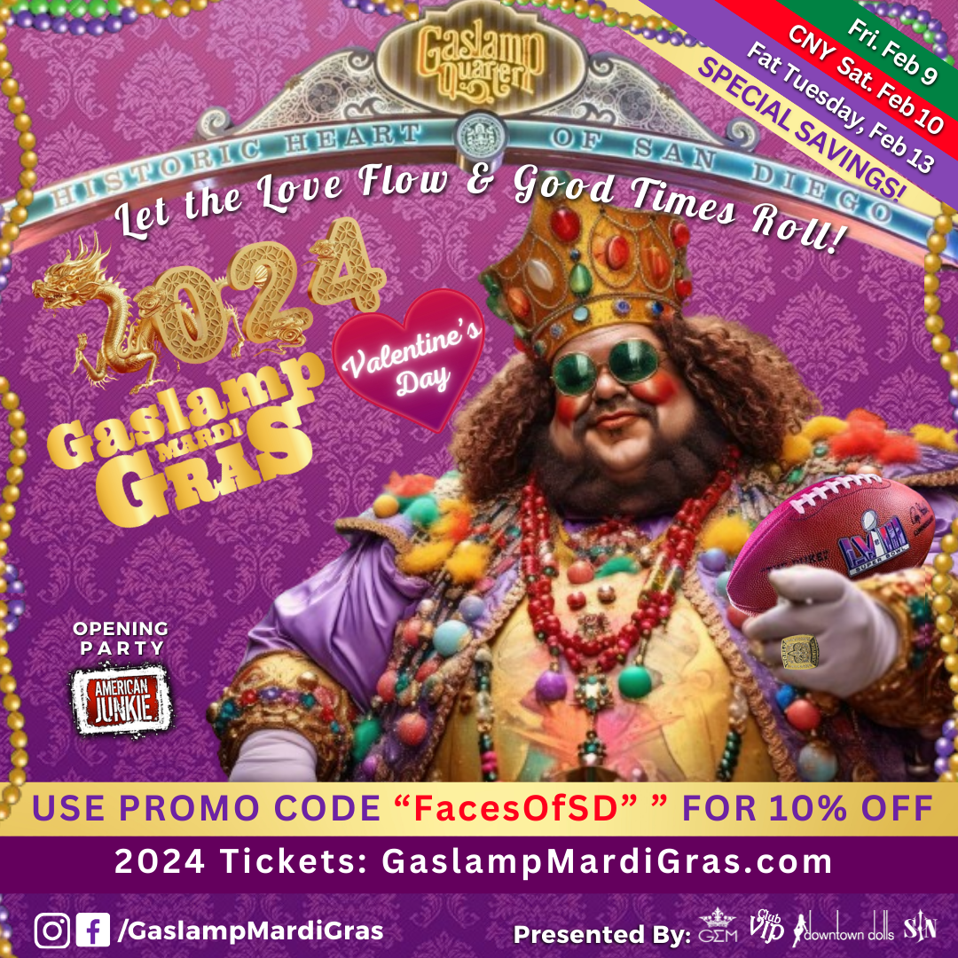 Use Exclusive Promo Code “FacesOfSD” to save 10% Tickets at GaslampMardiGras.com