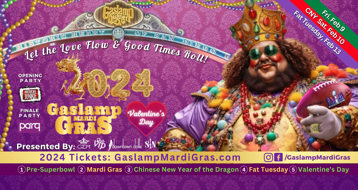 Gaslamp Mardi Gras + Dragon New Year + Valentines Day | Feb 9, 10, 13 & 14, 2024